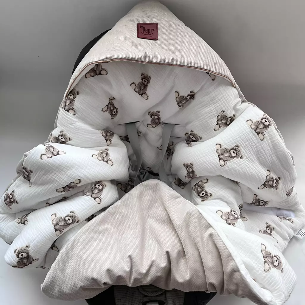 Muślin / Velvet z wypełnieniem – delikatny i naturalny muślin łączy się tutaj z miękkim velvetem i ociepleniem. To opcja na wiosnę, jesień i zimę, zapewniająca ciepło, ale i przewiewność.