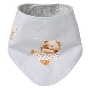Wykonana z najwyższej jakości materiałów – miękkiej bawełny 100% oraz delikatnego velvetu, zapewnia przyjemne uczucie na skórze. Zapinana na wygodne zatrzaski, gwarantuje stabilność i pewność, że nie zsunie się z szyi maluszka.