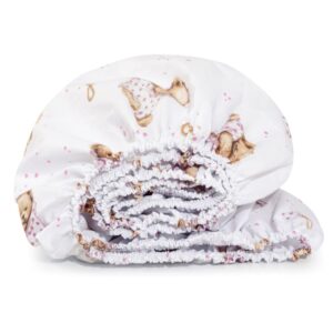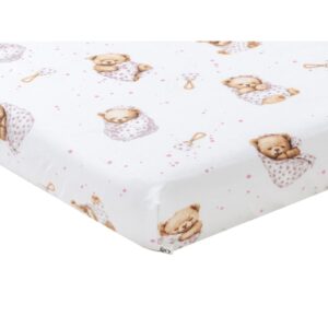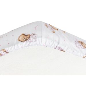 Bawełniane prześcieradło z gumką do łóżeczka 60×120 White Sleeping Teddy Bear