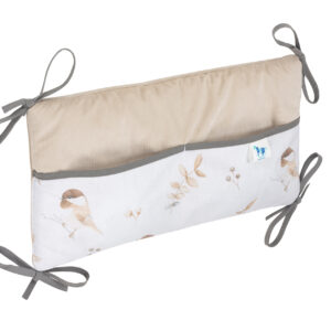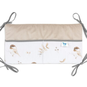 Bawełniany organizer do łóżeczka 42×22 Lovely Bird z velvetem cappucino