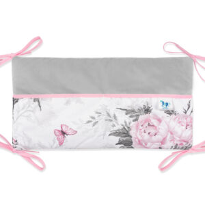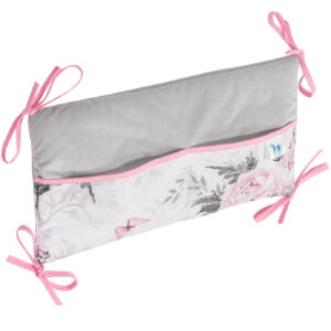 Bawełniany organizer do łóżeczka 42×22 Pink Flowers velvet grey