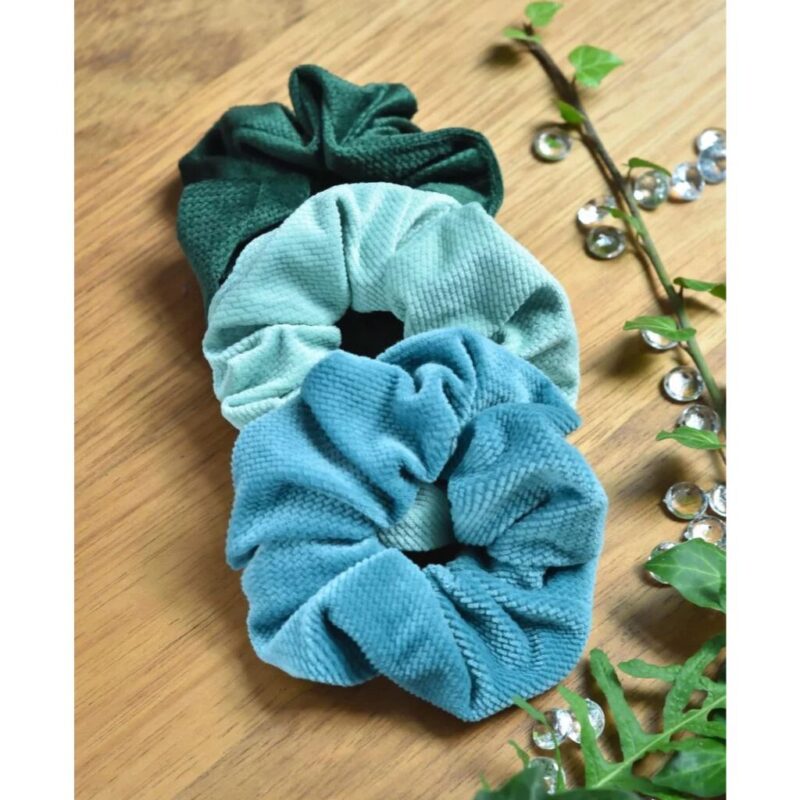 Gumka do włosów Scrunchie z velvetu emerald (trójpak)