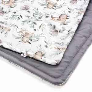 Przednia część koca ozdobiona jest miękką bawełną w uroczym wzorze. Dodatkowo koc wyposażony jest w wygodny rzep i rączki, które po złożeniu tworzą kompaktowy pakunek. Doskonały towarzysz podczas wycieczek, biwaków czy zabaw na plaży.