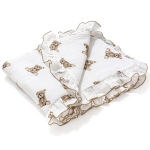 Kołderka muślinowa 75×100 z falbankami – Sweet Teddy