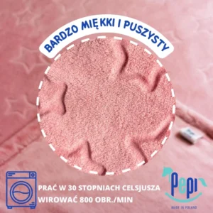 Delikatny i miękki polar minky w naszym ciepłym kocyku otuli Twoje maleństwo, zapewniając mu przyjemne ciepło i komfort podczas snu.