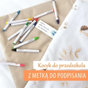 Znajduje się w niej także praktyczna metka, na której można wpisać imię, nazwisko oraz nazwę grupy przedszkolnej. Dla trwałości i czytelności najlepiej wypełnić metkę niezmywalnym markerem, co ułatwi identyfikację rzeczy Twojego dziecka w przedszkolu i zapewni ich bezpieczeństwo.