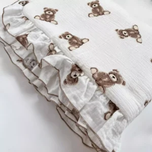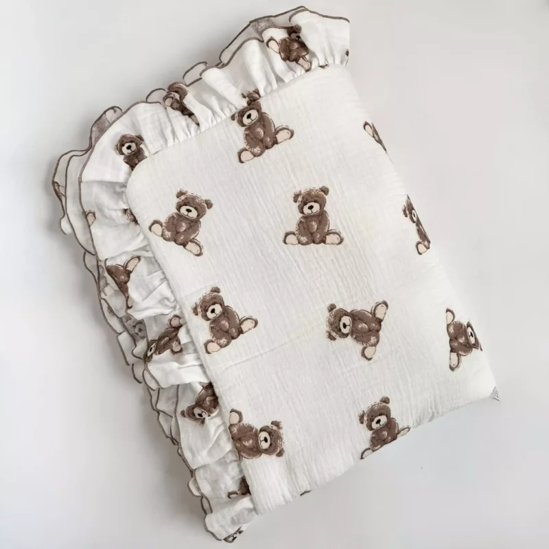 Kołderka muślinowa 55×75 z falbankami – Sweet Teddy