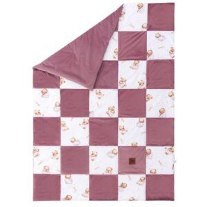 Kołderka patchwork 100×140 z płaską poduszką 40×60 White Sleeping Teddy Bear z velvetem