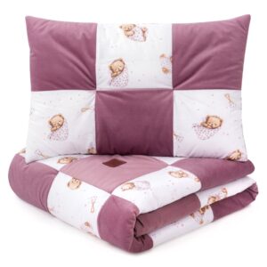 Wykonana z delikatnej bawełny oraz miękkiego velvetu, kołderka wraz z poduszką zapewnia dziecku maksymalny komfort. Wypełnienie z antyalergicznych włókien jest bezpieczne dla wrażliwej skóry malucha. Nasz komplet dba o optymalną regulację temperatury, sprawdzając się przez cały rok – zarówno w cieplejsze, jak i chłodniejsze noce.