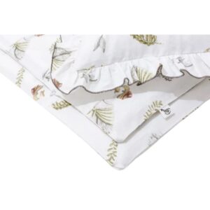 Komplet pościeli do łóżeczka wykonany z najwyższej jakości 100% bawełny, która charakteryzuje się właściwościami antyalergicznymi i antybakteryjnymi. Materiał ten jest delikatny dla skóry, zapewnia ciepło i umożliwia swobodną cyrkulację powietrza, zapobiegając przegrzaniu. Zarówno poszewka na poduszkę, jak i poszwa na kołdrę, są wyposażone w bezpieczne, kryte zamki błyskawiczne.