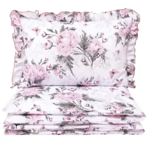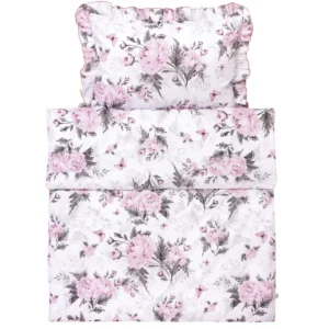 Komplet pościeli z falbanką – poszewka 40×60 i poszwa 140×200 Pink Flowers