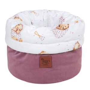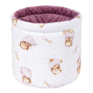 Koszyk Pojemnik z Materiału na Akcesoria dla Niemowlaka White Sleeping Teddy Bear z velvetem old rosa