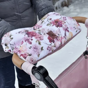 Mufka do wózka chroni dłonie przed zimnem, wiatrem i wilgocią. Wykonana z wytrzymałej, wodoodpornej tkaniny Oxford (100% poliester), a wewnątrz posiada miękki, ciepły plusz minky. Wypełnienie z puszystej owaty 300 g zapewnia doskonałą izolację termiczną. Mufka zapinana jest w trzech miejscach na podwójne napy, dzięki czemu stabilnie trzyma się na rączce wózka. Wymiary: 40 × 20 cm.