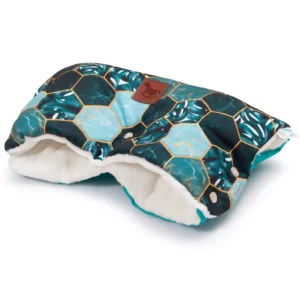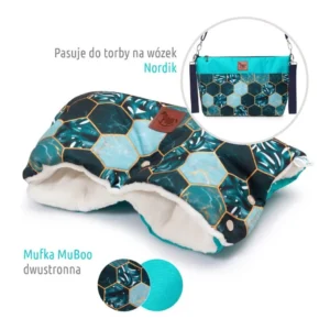 Mufka do wózka chroni dłonie przed wiatrem, chłodem oraz deszczem. Jest ciepła i miękka. Zapinana do wózka za pomocą nap, dzięki czemu jest łatwa w montażu. Uszyta z najwyższej jakości certyfikowanej tkaniny wodoodpornej, a wnętrze z ciepłego i miłego w dotyku polaru minky. Wypełniona zimową antyalergiczną ociepliną silikonową, która nie przesuwa się podczas prania.