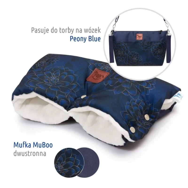 Mufka do wózka chroni dłonie przed zimnem, wiatrem i wilgocią. Wykonana z wytrzymałej, wodoodpornej tkaniny Oxford (100% poliester), a wewnątrz posiada miękki, ciepły plusz minky. Wypełnienie z puszystej owaty 300 g zapewnia doskonałą izolację termiczną. Mufka zapinana jest w trzech miejscach na podwójne napy, dzięki czemu stabilnie trzyma się na rączce wózka. Wymiary: 40 × 20 cm.