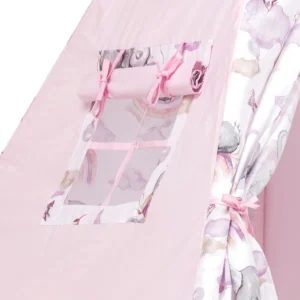 Namiot TIPI dla dzieci Wigwam z okienkiem Eledreams Pink – zestaw z matą i 3 poduszkami + GRATIS stabilizator