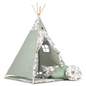 Namiot TIPI dla dzieci Wigwam z okienkiem Green Groove – zestaw z matą i 3 poduszkami + GRATIS stabilizator