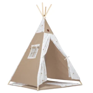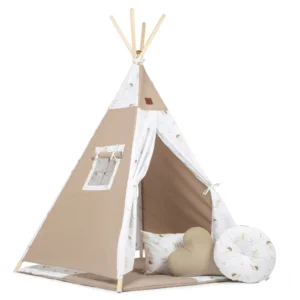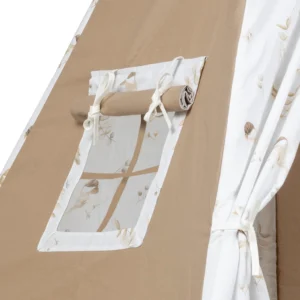 Namiot TIPI dla dzieci Wigwam z okienkiem Lovely Bird – zestaw z matą i 3 poduszkami + GRATIS stabilizator