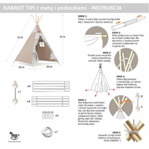 Namiot TIPI dla dzieci Wigwam z okienkiem Safari + GRATIS stabilizator