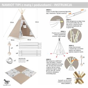 Namiot TIPI dla dzieci Wigwam z okienkiem Safari – zestaw z matą + GRATIS stabilizator