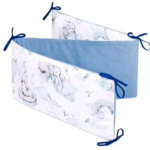 Zapewnij swojemu maluszkowi najbezpieczniejsze i najprzytulniejsze miejsce do spania! Ten ręcznie szyty ochraniacz do łóżeczka (180×30 cm) z certyfikowanych materiałów to gwarancja spokojnego snu i ochrony przed przypadkowymi uderzeniami o twarde elementy łóżeczka oraz zapobiega wsunięciu rączek czy nóżek między szczebelki podczas snu, czy aktywnej zabawy. Składa się z trzech stabilnych części z długimi troczkami, co zapewnia idealne dopasowanie i łatwość montażu.