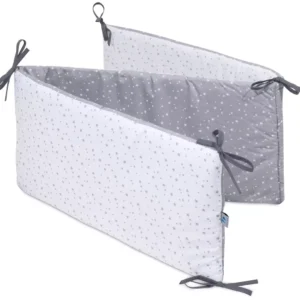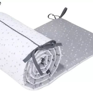Zapewnij swojemu maluszkowi najbezpieczniejsze i najprzytulniejsze miejsce do spania! Ten ręcznie szyty ochraniacz do łóżeczka (180×30 cm) z certyfikowanych materiałów to gwarancja spokojnego snu i ochrony przed przypadkowymi uderzeniami o twarde elementy łóżeczka oraz zapobiega wsunięciu rączek czy nóżek między szczebelki podczas snu, czy aktywnej zabawy. Składa się z trzech stabilnych części z długimi troczkami, co zapewnia idealne dopasowanie i łatwość montażu.