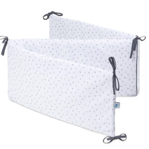 Zapewnij swojemu maluszkowi najbezpieczniejsze i najprzytulniejsze miejsce do spania! Ten ręcznie szyty ochraniacz do łóżeczka (180×30 cm) z certyfikowanych materiałów to gwarancja spokojnego snu i ochrony przed przypadkowymi uderzeniami o twarde elementy łóżeczka oraz zapobiega wsunięciu rączek czy nóżek między szczebelki podczas snu, czy aktywnej zabawy. Składa się z trzech stabilnych części z długimi troczkami, co zapewnia idealne dopasowanie i łatwość montażu.