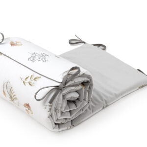 Zapewnij swojemu maluszkowi najbezpieczniejsze i najprzytulniejsze miejsce do spania! Ten ręcznie szyty ochraniacz do łóżeczka (180×30 cm) z certyfikowanych materiałów to gwarancja spokojnego snu i ochrony przed przypadkowymi uderzeniami o twarde elementy łóżeczka oraz zapobiega wsunięciu rączek czy nóżek między szczebelki podczas snu, czy aktywnej zabawy. Składa się z trzech stabilnych części z długimi troczkami, co zapewnia idealne dopasowanie i łatwość montażu.