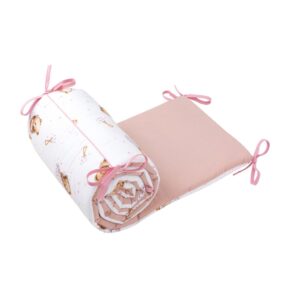 Zapewnij swojemu maluszkowi najbezpieczniejsze i najprzytulniejsze miejsce do spania! Ten ręcznie szyty ochraniacz do łóżeczka (180×30 cm) z certyfikowanych materiałów to gwarancja spokojnego snu i ochrony przed przypadkowymi uderzeniami o twarde elementy łóżeczka oraz zapobiega wsunięciu rączek czy nóżek między szczebelki podczas snu, czy aktywnej zabawy. Składa się z trzech stabilnych części z długimi troczkami, co zapewnia idealne dopasowanie i łatwość montażu.
