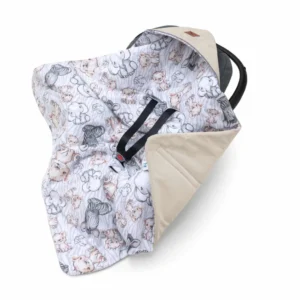 Dzięki uniwersalnym strategicznie rozmieszczonym otworom na pasy 3 i 5-punktowe otulacz idealnie pasuje do większości fotelików samochodowych, nosidełek oraz wózków spacerowych. Solidne zapięcie na rzep umożliwia łatwą regulację, a uroczy kapturek z kolorową wypustką nie tylko dodaje wdzięku, ale i stabilności. To mądry i praktyczny wybór dla komfortowych i bezpiecznych podróży przez cały rok!