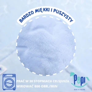 Dzięki delikatnemu w dotyku materiałowi, poszewka stanie się ulubioną przytulanką dziecka, dodając wnętrzu ciepła i uroku. Wykonana z pluszu minky, charakteryzuje się trwałością, odpornością na mechacenie i szybkim schnięciem, co czyni ją praktycznym wyborem na co dzień.