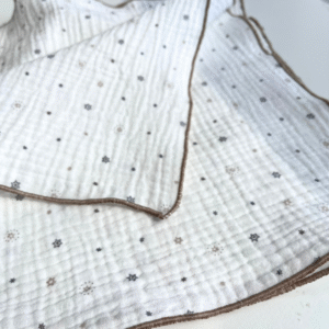 Muślin double gauze zapewnia doskonałą przewiewność i chłonność, a subtelna struktura materiału nadaje pieluszce elegancki, naturalny wygląd. Dzięki niewielkim wymiarom i praktycznemu zastosowaniu, ulewajka ułatwia codzienną opiekę nad niemowlakiem.