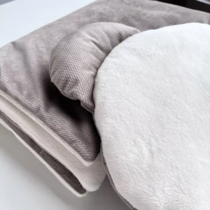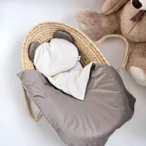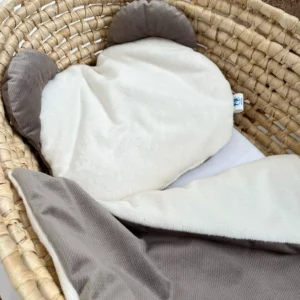 Poznaj nasz wyjątkowy zestaw pluszowy Velvet & Minky, który łączy w sobie elegancję, funkcjonalność i bezpieczeństwo. Zestaw składa się z płaskiej podusi w kształcie uroczego misia z ozdobnymi uszkami oraz cieplutkiego kocyka – idealnego do wózka, łóżeczka czy fotelika samochodowego.