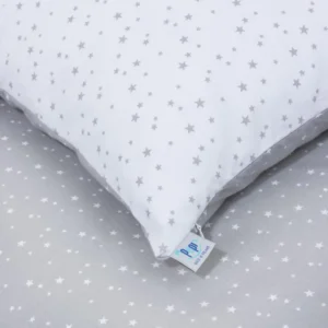 Zestaw do żłobka z płaską poduszką – Grey Galaxy – bawełna/velvet