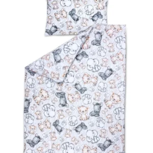 Zestaw pościeli do łóżeczka wykonany ze 100% bawełny o doskonałych właściwościach antyalergicznych oraz antybakteryjnych. Materiał ten zapewnia ciepło, a jednocześnie umożliwia skórze maluszka swobodne oddychanie, eliminując ryzyko przegrzania. Poszewka na poduszkę oraz pokrowiec na kołdrę wyposażone są w bezpieczne zamki błyskawiczne, które są odpowiednio osłonięte, by zapewnić spokojny sen i wygodę najmłodszemu użytkownikowi.