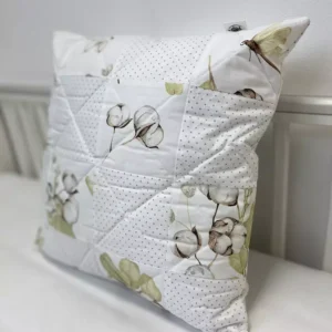 Bawełniana poszewka na poduszkę uszyta metodą patchwork. Ma ona wyjątkowy, rękodzielniczy urok i pasują do wielu stylów wnętrzarskich.