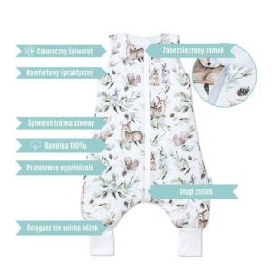 Śpiworek z nogawkami to idealne rozwiązanie przez cały rok, zarówno w dzień jak i w nocy, podczas drzemki czy zabawy. Zastępuje kołdrę, kocyk – nie trzeba dodatkowo nakrywać dziecka.