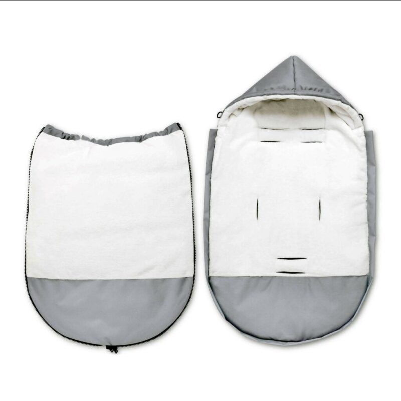 Śpiworek jest wyposażony w otwory na trzy- i pięciopunktowe pasy bezpieczeństwa z możliwością regulacji, dzięki czemu pasuje do większości wózków, fotelików i nosidełek typu gondola.