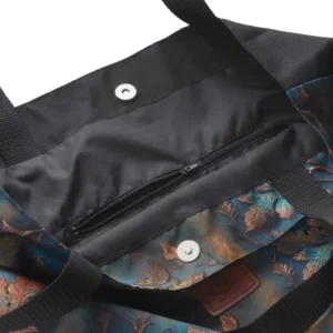 Torba shopperka na ramię o wymiarach 44 x 34 x 8 cm (+- 1 cm) wykonana z tkaniny wodoodpornej. Zapięcie na zatrzask zapewnia bezpieczeństwo zawartości, podczas […]