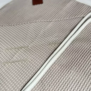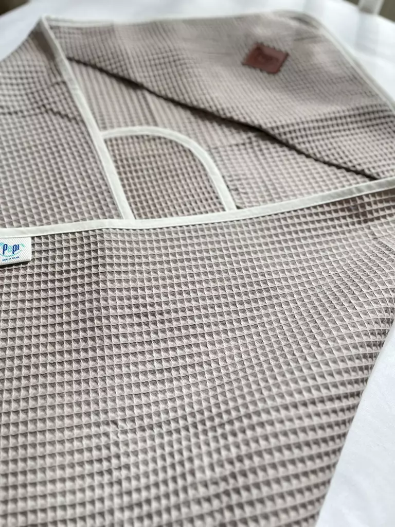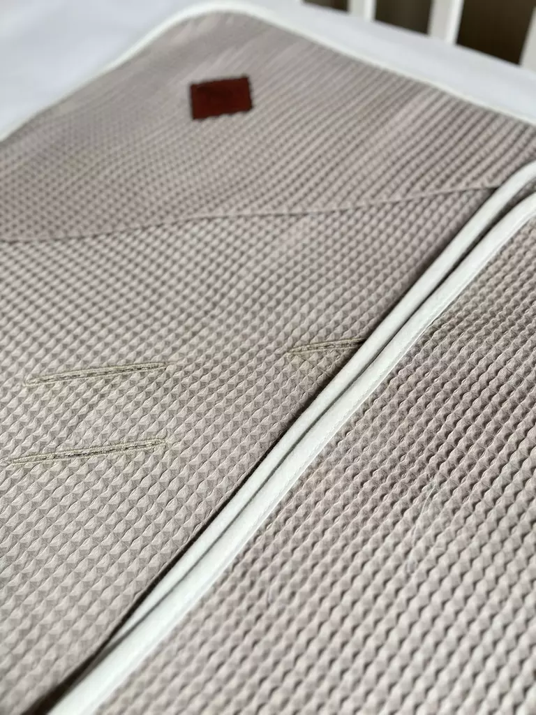 Bawełniany wafel jest niezwykle delikatny dla wrażliwej skóry dziecka, a jego charakterystyczna struktura dodaje uroku i elegancji. Tkanina jest przyjemna w dotyku, szybko schnie i jest łatwa w pielęgnacji, co czyni kocyk praktycznym towarzyszem codziennych drzemek i zabaw.