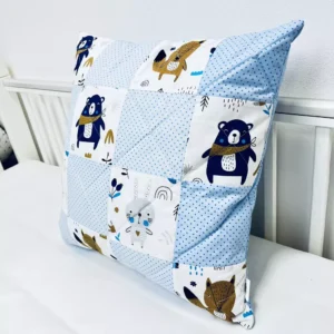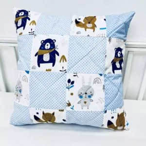 UNIKAT***Poszewka na poduszkę patchwork 40×40 Blue Bear blue