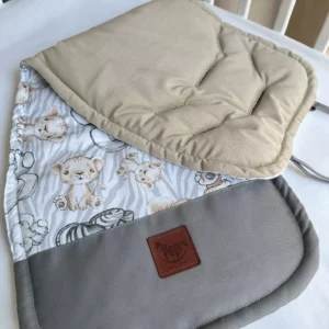 Zestaw do żłobka z płaską poduszką – Safari grey – bawełna/velvet
