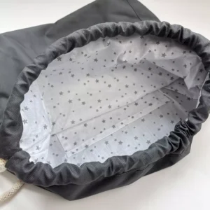 Zamykany za pomocą solidnego sznurka, który pełni również funkcję szelek, zapewnia szybki dostęp do wnętrza i komfort noszenia na co dzień. W środku znajduje się podszewka z naturalnej, bawełnianej tkaniny, która dodaje całości lekkości i dba o estetyczne wykończenie.