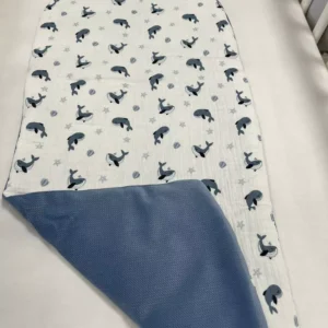 Kocyk z wypełnieniem zapewnia dodatkową warstwę ciepła w chłodniejsze dni, dzięki antyalergicznemu wypełnieniu, zapewniającemu odpowiednią termoregulację i spokojny sen dziecka.