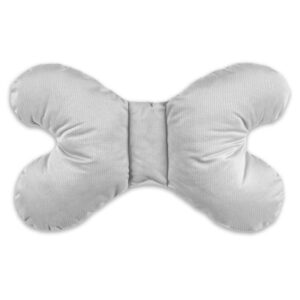 Poduszka motylek posiada specjalnie opracowany kształt, który wspiera naturalną pozycję główki dziecka, zapobiegając jej niekontrolowanemu przemieszczaniu się oraz potencjalnym mikrourazom.