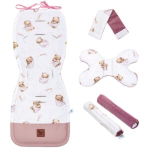 Wkładka do spacerówki – zestaw 5w1 – White Sleeping Teddy Bear – bawełna/velvet