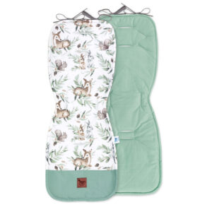Idealnie dopasowana, zawsze na miejscu i czysta! Nasza dwustronna uniwersalna wkładka do spacerówki, dzięki 6 otworom na pasy pasuje do większości wózków i fotelików-kołysek. Troczki mocujące zapobiegają jej przesuwaniu, a wodoodporny podnóżek chroni przed brudem z bucików.