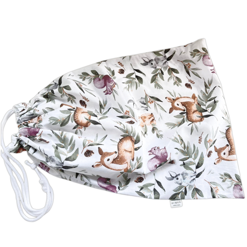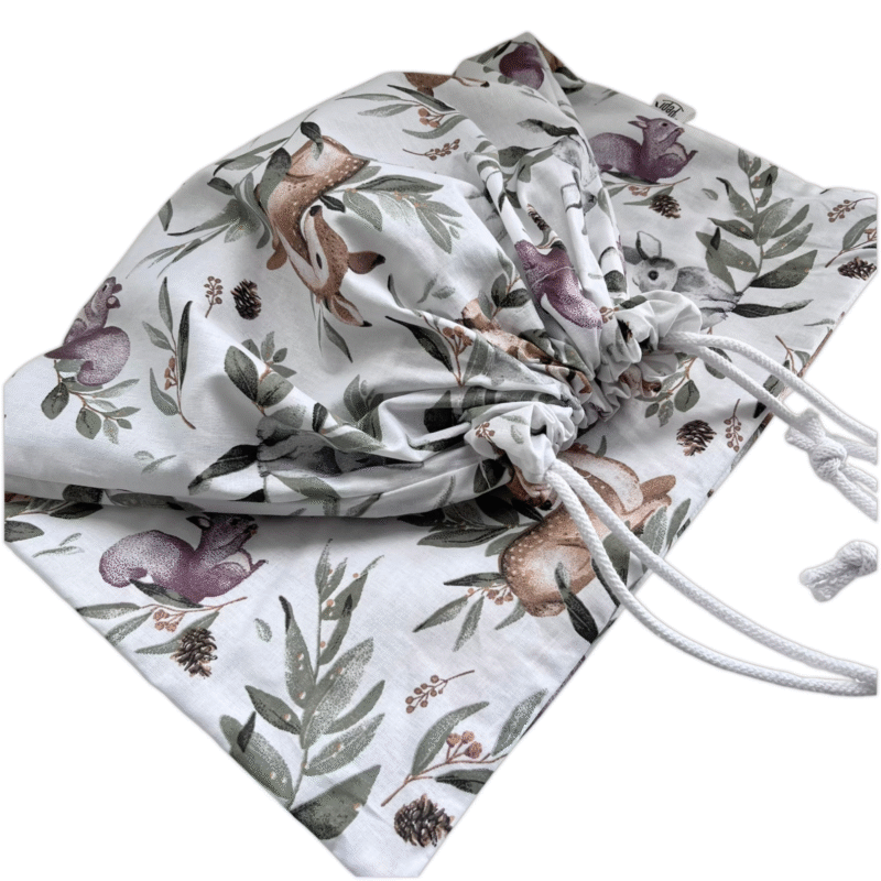Praktyczny, bawełniany worek, który ułatwia codzienne przenoszenie pościeli i jej higieniczne przechowywanie w przedszkolu. Specjalna metka pozwala trwale wpisać imię, nazwisko dziecka i nazwę grupy – dzięki temu pościel zawsze wróci do właściciela, a personel łatwo ją zidentyfikuje.