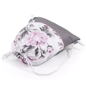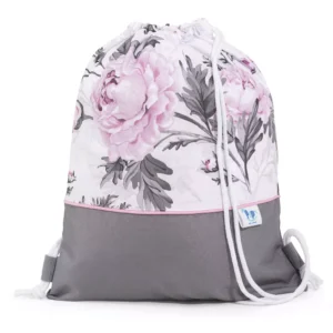 Górna część worka wykonana jest z przewiewnej bawełny, co zapewnia odpowiednią cyrkulację powietrza i chroni zawartość przed wilgocią. Dół worka uszyty jest z wytrzymałego, wodoodpornego materiału, co gwarantuje ochronę przed zabrudzeniami i wilgocią. Worek ściągany jest bawełnianym sznurkiem z możliwością regulacji, dzięki czemu dziecko może go wygodnie nosić na plecach.