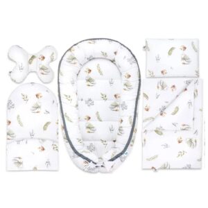 Harmonia i spokój w jednym zestawie! Wyobraź sobie, jak wszystkie elementy wyprawki, od kokonu po kocyk, idealnie do siebie pasują, tworząc spójną i piękną całość w pokoiku Twojego dziecka. Poczuj ulgę, mając wszystko, czego potrzebujesz, w jednym, przemyślanym zestawie. Zestaw zawiera: kokon, dwie poduszki, kocyk oraz dwustronny materacyk do kokonu, wszystko zaprojektowane z myślą o wygodzie i bezpieczeństwie dziecka.